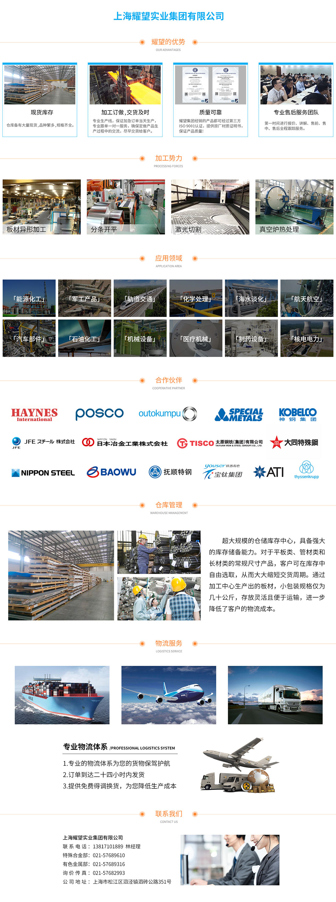 根據(jù)國內(nèi)外市場要求,整合全球金屬材料,優(yōu)化配置原材料資源。現(xiàn)已成為全國規(guī)模較大、工藝技術(shù)裝備水平較高、品種規(guī)格最全的不銹鋼企業(yè)。我們通過代理、經(jīng)銷、代銷等方式與數(shù)10家國內(nèi)外最優(yōu)秀鋼鐵企業(yè)達(dá)成合作伙伴關(guān)系。
